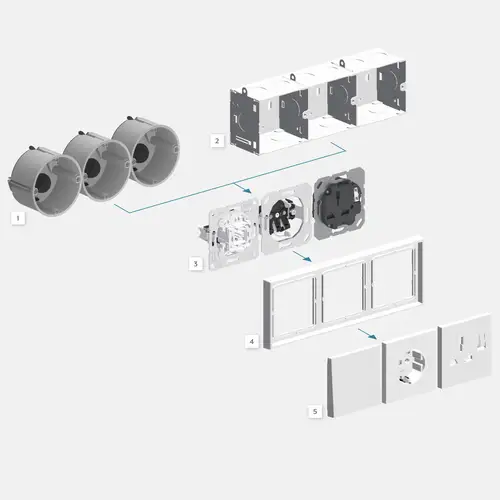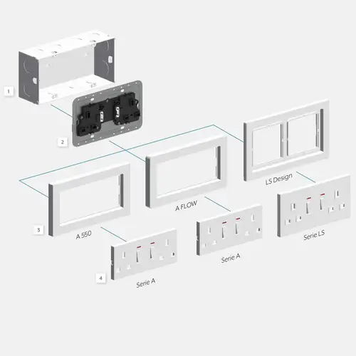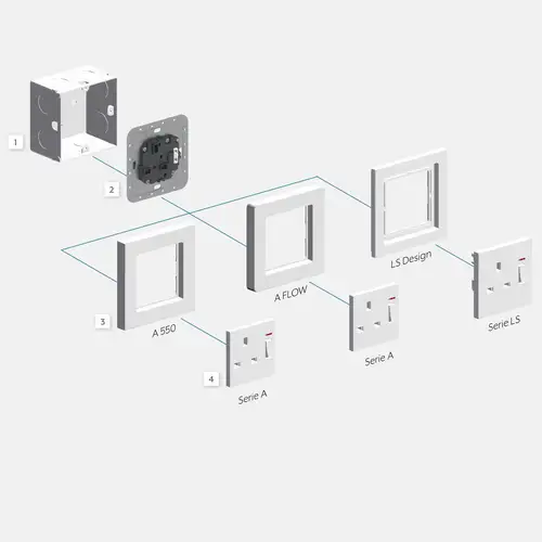 Other countries, other plug types. For worldwide use, we provide standardised sockets for country-specific plugs and power supplies. Numerous international connection modes are available thanks to the JUNG modular system. Every individual socket takes account of the respective regional requirements. The international sockets from JUNG can be implemented in virtually all design ranges – they can also be combined in multiple frames. This makes a uniform design possible.
