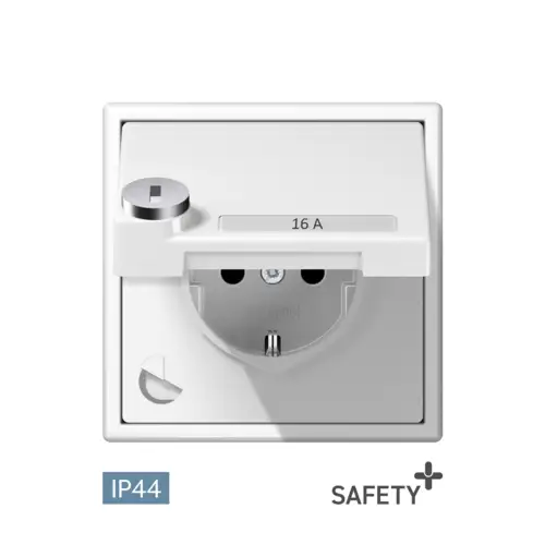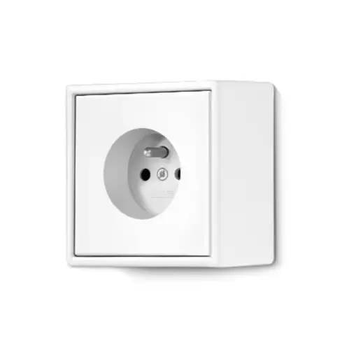 In JUNG SCHUKO® sockets with the "Safety Plus" designation, the shutter provides additional safety. It is part of the cover of the socket and is intended to remain closed until a plug for the intended use is inserted. In this way, improper or erroneous use, such as inserting items other than plugs, can be prevented. As a result, the shutter provides enhanced contact protection in the best way possible and reduces the risk that people with conductive items come into contact with the socket and as a result possibly get an electric shock.
